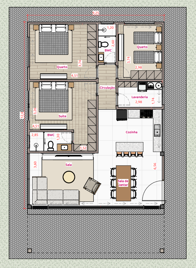 Antes da compra, é importante verificar se o tamanho do projeto escolhido é compatível com o seu terreno — ou seja, se as dimensões da casa cabem dentro dos limites do lote, respeitando recuos e áreas obrigatórias.